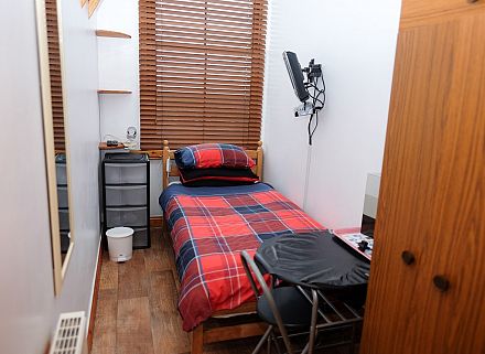 - South facing single room, with a shower and hand basin in the room. It has a small double bed. It is on first floor. The shared toilet is on the same floor.